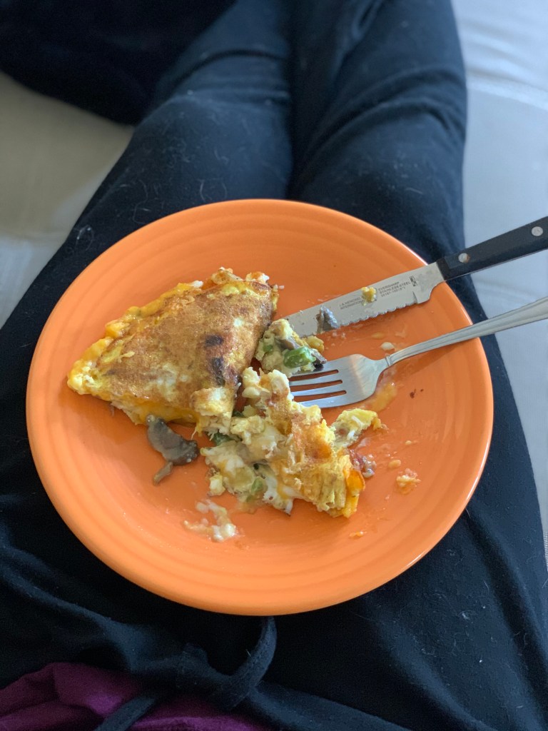 This two-egg omelette was stuffed with turkey, chopped green beans, sautéed mushrooms, and mashed potatoes. Yup, I put mashed potatoes in my omelet, and boy am I glad I did. Those little dollops were part of the best bites of the meal. I almost forgot to mention the blanket of cheese that went on top of all of those fillings. I didn’t think gravy would be a good fit in this omelet, but wanted to make sure there was still plenty of flavor. A heavy sprinkle of shredded cheddar got the job done.