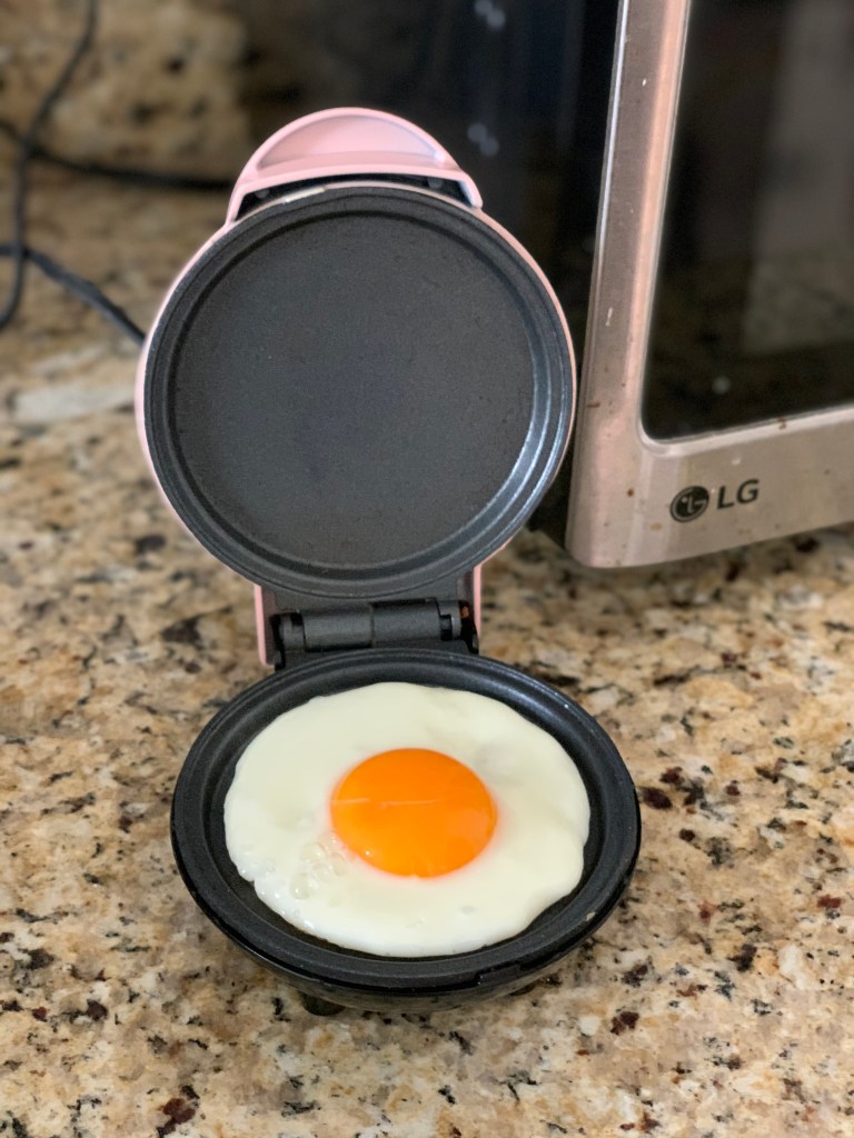 I purchased this mini griddle for two main reasons, and neither were to make pancakes: 1) it’s pink, 2) to make easy breakfast sandwiches. I love sunny side up eggs alone or on a sandwich, and this makes the perfect sunny side up egg every time. The griddle take 1-2 minutes to get hot. I crack my egg right on it, and in the time it takes for me to toast an English muffin with some cheese on top, a perfect sunny side up egg is cooked and ready. Hello, stunning breakfast sandwich. I simply wipe it clean with a damp cloth or paper towel when it’s cooled and put it away.