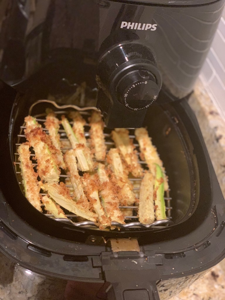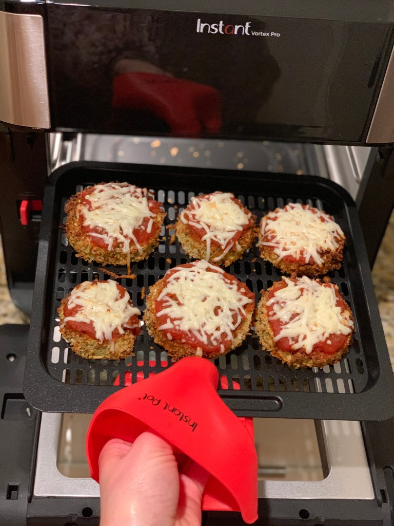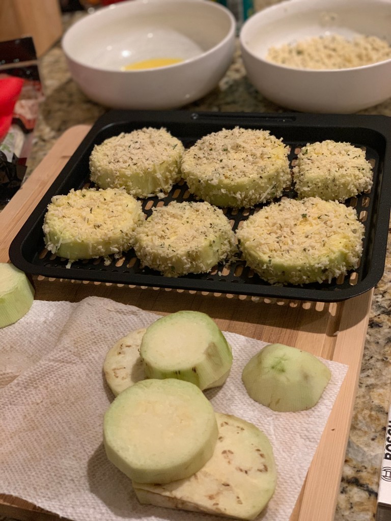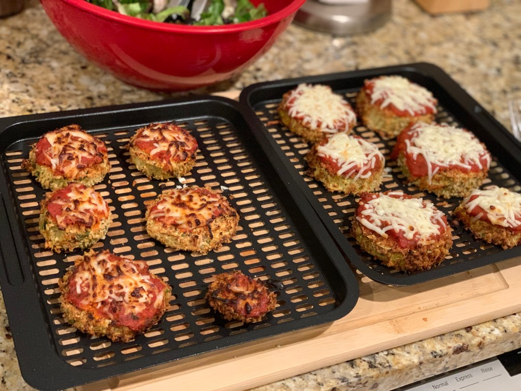 I was thrilled that setup was so easy because that meant I got to jump right into cooking. I decided that eggplant parmesan would be a fun way to test out the Vortex. I didn’t love making eggplant parmesan in my basket style fryer because it required cooking in batches.