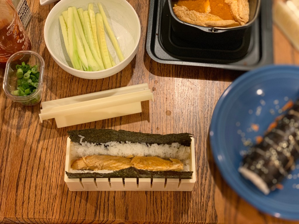 I used this chicken the first time I tried making my own sushi – buffalo chicken sushi rolls are my new obsession. Homemade sushi post coming soon – I can’t wait to tell you more about this delicious creation! Sneak peek below!